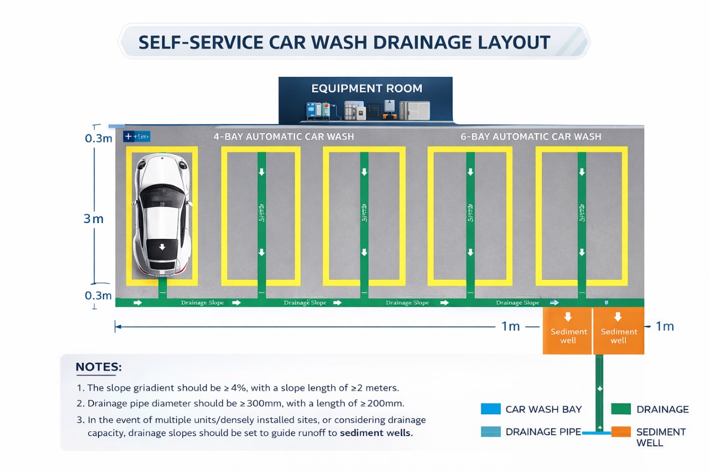 Професионален дизайн на дренажни системи за автомивки на самообслужване, осигуряващ ефективен воден поток, правилно отделяне на утайките и стабилна дългосрочна работа.